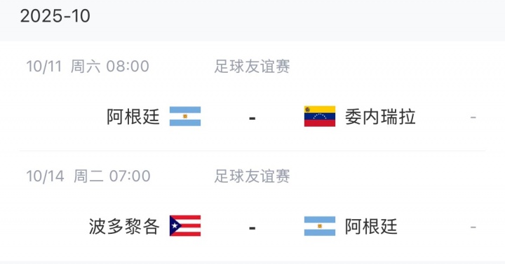 阿根廷將于10月11日對(duì)陣委內(nèi)瑞拉,在14日對(duì)陣委內(nèi)瑞拉。